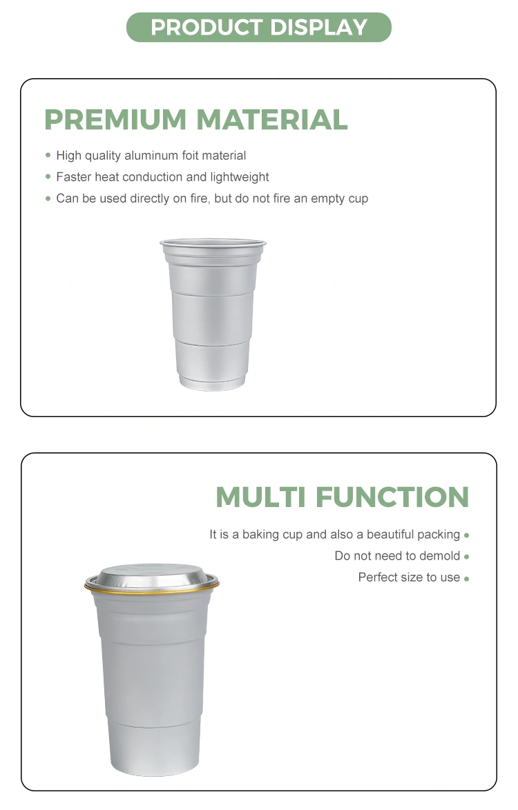 సాధారణ కంటైనర్‌ల వలె కాకుండా, యుంచు 16oz డిస్పోజబుల్ కస్టమ్ అల్యూమినియం ఫాయిల్ డ్రింక్ కప్ నిర్దిష్ట సందర్భాలలో బ్రాండ్‌ల కోసం ప్యాకేజింగ్ సొల్యూషన్‌లను అందించడానికి ప్రత్యేకంగా రూపొందించబడింది. దాని కాంపాక్ట్ సైజుతో (460 మిల్లీలీటర్లు), ఈ అనుకూలీకరించదగిన డిస్పోజబుల్ 16oz కస్టమ్ అల్యూమినియం ఫాయిల్ డ్రింక్ కప్ సింగిల్ సర్వ్ ఇన్‌స్టంట్ పానీయాల వినియోగ అలవాట్లను అందిస్తుంది. ఈ 16oz కస్టమ్ డిస్పోజబుల్ అల్యూమినియం ఫాయిల్ పార్టీ కప్‌లు దాని ప్రాక్టికల్ ఫంక్షన్‌లకు మించి టేకౌట్, మార్కెట్‌లు లేదా క్యాంపింగ్ కార్యకలాపాలకు ప్రత్యేకంగా అనుకూలంగా ఉంటాయి. ప్రధానంగా, ఇది బ్రాండ్ విలువను పెంచడంలో సహాయపడుతుంది.