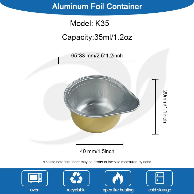 యుంచు అల్యూమినియం రేకు సరఫరాదారు K35 అల్యూమినియం రేకు సీలింగ్ సిలికాన్-సీల్-ఫ్రీ ఖాళీ కాఫీ క్యాప్సూల్ టాప్: 65*33 మిమీ, 2.5*1.2 అంగుళాలు, బేస్: 40 మిమీ, 1.5 అంగుళాలు, ఎత్తు: 29 మిమీ 1.1 అంగుళాలు, 35 మి.లీ 1.2 oz ఆహారాన్ని కలిగి ఉండగలవు, ఈ కాఫీ క్యాప్సూలేకు మాత్రమే కాదు వర్తింపచేయడానికి మూసివున్న అల్యూమినియం రేకు మూత నుండి