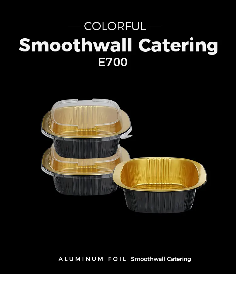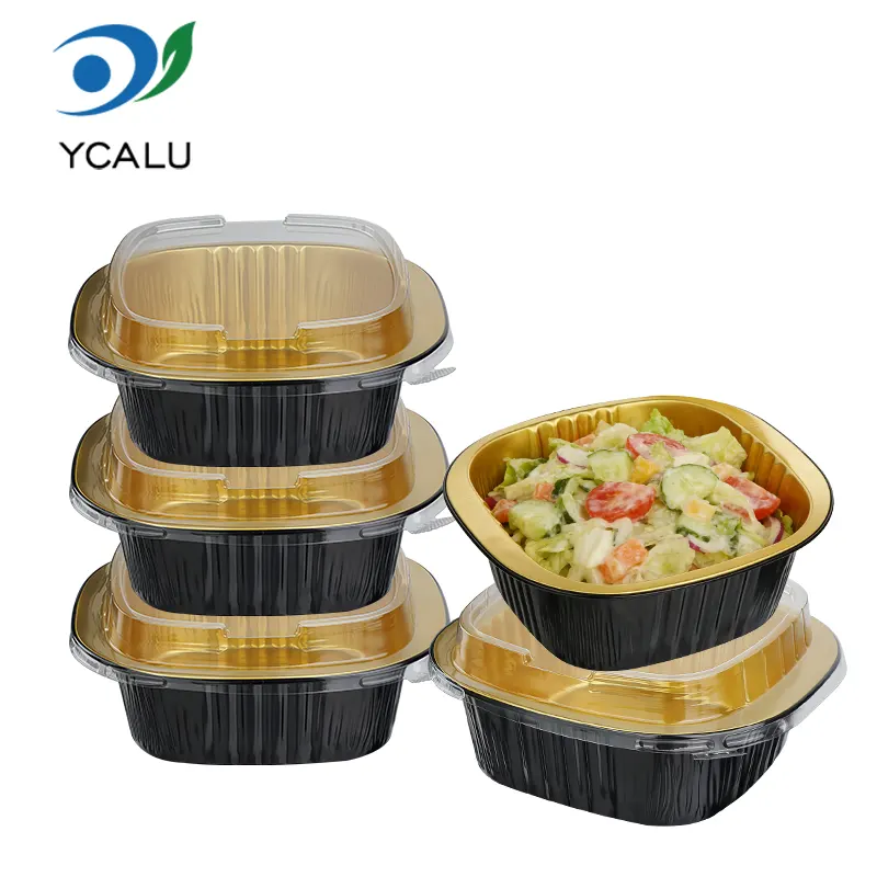 యుంచు అల్యూమినియం ఫాయిల్ సప్లయర్ యొక్క డిస్పోజబుల్ బైనరల్ స్క్వేర్ బాక్స్ బ్లాక్ గోల్డ్ లైట్-వాల్డ్ అల్యూమినియం ఫాయిల్ కంటైనర్‌లు ఫుడ్-గ్రేడ్ 8011 అల్యూమినియం అల్లాయ్ ఫాయిల్‌తో తయారు చేయబడ్డాయి. ఉపరితలంపై దట్టమైన ఆక్సైడ్ పొరను ఏర్పరచడానికి వాటిని అధిక-ఉష్ణోగ్రత ఎనియలింగ్ మరియు స్టెరిలైజేషన్ ప్రక్రియలతో చికిత్స చేస్తారు. వాటికి భారీ లోహాలు లేవు మరియు వాసన లేదు. వారు అన్ని రకాల ఆహారంతో ప్రత్యక్ష సంబంధంలో ఉంటారు మరియు అధిక ఉష్ణోగ్రతల వద్ద హానికరమైన పదార్ధాల అవక్షేపణను నిరోధించవచ్చు. అవి వేడి వంటకాలు, చల్లని వంటకాలు, డెజర్ట్‌లు లేదా సాస్‌లను ఉంచడానికి ఉపయోగించబడినా, అవి ఆహార భద్రతను రక్షించగలవు మరియు FDA మరియు SGS వంటి బహుళ భద్రతా ధృవపత్రాలకు అనుగుణంగా ఉంటాయి, ప్రతి కాటును మరింత సురక్షితంగా చేస్తాయి. ప్రత్యేకమైన బ్లాక్ గోల్డ్ లైట్ వాల్ డిజైన్ సాంప్రదాయ అల్యూమినియం ఫాయిల్ కంటైనర్‌ల మార్పులేని ఆకృతిని విచ్ఛిన్నం చేస్తుంది. మాట్ బ్లాక్ గోల్డ్ కోటింగ్ మరియు మృదువైన గోడ ఉపరితలం అధిక-ముగింపు భావాన్ని తెస్తుంది. ఇది అద్భుతమైన రూపాన్ని కలిగి ఉండటమే కాకుండా, ఇది కాంతి మరియు ఆక్సిజన్‌ను సమర్థవంతంగా నిరోధించగలదు, ఆహారం యొక్క ఆక్సీకరణను ఆలస్యం చేస్తుంది, ఆహారం యొక్క వాసన మరియు తేమను గట్టిగా లాక్ చేస్తుంది, వాసన బదిలీని నివారించవచ్చు మరియు ఆహారం యొక్క అసలు రుచిని ఎక్కువ కాలం ఉంచుతుంది. మృదువైన గోడ ఉపరితలంపై పొడవైన కమ్మీలు లేదా ముడతలు లేవు, ఇది బ్యాక్టీరియాను పెంచే అవకాశం తక్కువగా ఉంటుంది మరియు శుభ్రం చేయడం సులభం. ఇది ప్రింటింగ్ అనుకూలీకరణకు మెరుగ్గా అనుగుణంగా ఉంటుంది, క్యాటరింగ్ బ్రాండ్‌లకు వారి గుర్తింపు మరియు నాణ్యతను మెరుగుపరచడంలో సహాయపడుతుంది.