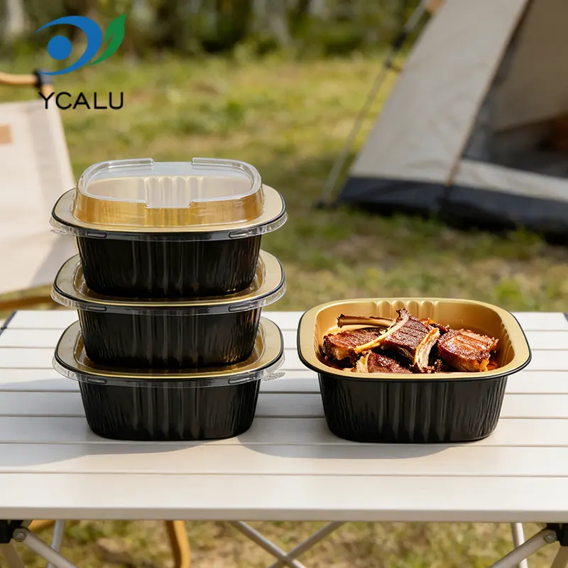 డిస్పోజబుల్ బైనరల్ స్క్వేర్ బాక్స్ బ్లాక్ గోల్డ్ అల్యూమినియం ఫాయిల్ కంటైనర్‌లు