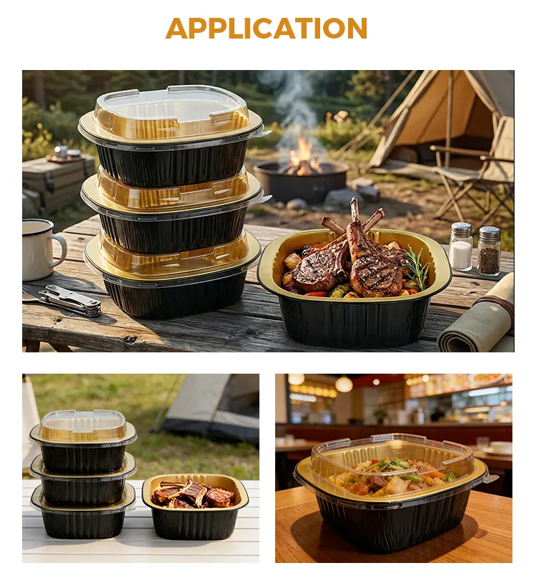 అన్ని దృశ్యాలలో వినియోగ అవసరాలను అన్‌లాక్ చేయడానికి బహుళ-ఫంక్షనల్ అనుసరణ. ఇది అద్భుతమైన అధిక మరియు తక్కువ ఉష్ణోగ్రత నిరోధకతను కలిగి ఉంది మరియు -20 ° C నుండి 250 ° C వరకు తీవ్ర ఉష్ణోగ్రతలను తట్టుకోగలదు. పరమాణు నిర్మాణం స్థిరంగా మరియు మారదు. దీన్ని నేరుగా ఓవెన్‌లో, ఎయిర్ ఫ్రైయర్‌లో, వేడి చేయడానికి స్టీమర్‌లో లేదా శీతలీకరణ మరియు గడ్డకట్టడానికి రిఫ్రిజిరేటర్‌లో ఉంచవచ్చు. కంటైనర్ మార్చవలసిన అవసరం లేదు. వంట, నిల్వ నుండి వడ్డించే వరకు, ఇది ఒకే దశలో జరుగుతుంది, పదేపదే పెట్టెలను మార్చడం వల్ల కలిగే ఇబ్బందిని తొలగిస్తుంది. ఇది బియ్యం, బార్బెక్యూ, స్టీమింగ్ కూరగాయలు, ముందుగా తయారుచేసిన డిష్ ప్యాకేజింగ్ మరియు ఇతర దృశ్యాలకు ప్రత్యేకంగా అనుకూలంగా ఉంటుంది. వన్-టైమ్ యూజ్ డిజైన్‌ను క్లీనింగ్ చేయకుండానే ఉపయోగించిన తర్వాత నేరుగా విస్మరించవచ్చు, ఇది వంటగది శుభ్రపరిచే పనిభారాన్ని బాగా తగ్గిస్తుంది, శ్రమ మరియు సమయ ఖర్చులను ఆదా చేస్తుంది మరియు కుటుంబ విందులు, స్నేహితుల కలయికలు, టేకౌట్ ప్యాకేజింగ్, హోటల్ క్యాటరింగ్, ఎయిర్‌లైన్ క్యాటరింగ్ మరియు ఇతర దృశ్యాలకు అనుకూలంగా ఉంటుంది.