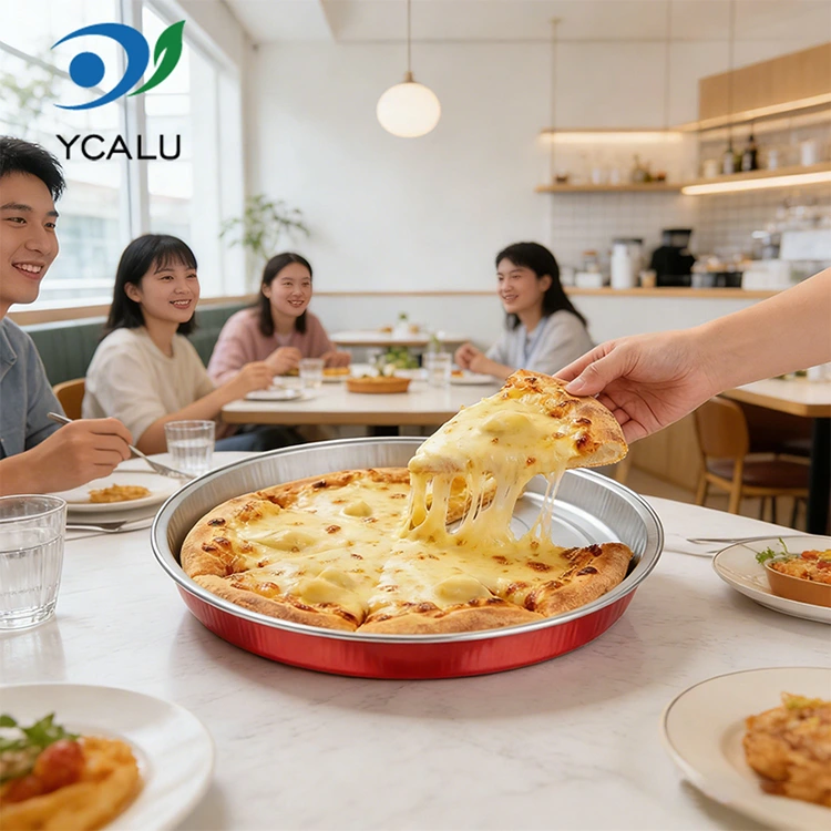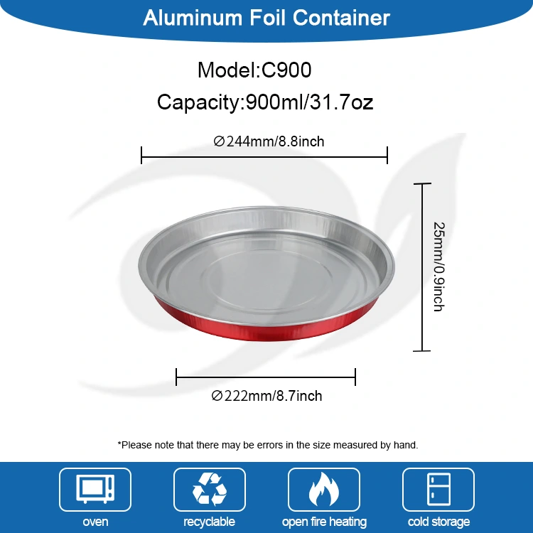 యుంచు అల్యూమినియం ఫాయిల్ సప్లయర్ C900 డిస్పోజబుల్ పిజ్జా పాన్ ప్యాకేజింగ్ రౌండ్ అల్యూమినియం ఫాయిల్ కంటైనర్ ఫుడ్-గ్రేడ్ ముడి అల్యూమినియం ఫాయిల్‌తో తయారు చేయబడింది, వాసన మరియు మలినాలతో తయారు చేయబడింది, ఇది ఆహారాన్ని నమ్మకంగా తాకడం సురక్షితం. మందం ఏకరీతిగా మరియు దృఢంగా ఉంటుంది మరియు ఇది 250 ° C వరకు అధిక ఉష్ణోగ్రతలు మరియు తక్కువ ఉష్ణోగ్రతలు -20 ° C వరకు తట్టుకోగలదు. తాజాగా వేడిగా ఉండే పిజ్జా నేరుగా సర్వ్ చేయవచ్చు. కంటైనర్‌ను మార్చకుండా ఫ్రిజ్‌లో ఉంచవచ్చు మరియు తాజాగా ఉంచవచ్చు. దీన్ని వేడి చేయడం ద్వారా నేరుగా తినవచ్చు, ఇది ఆహార పంపిణీ సామర్థ్యాన్ని బాగా మెరుగుపరుస్తుంది మరియు శుభ్రపరిచే ఇబ్బందులను ఆదా చేస్తుంది. అల్యూమినియం ఫాయిల్ PET కవర్ నీటి ఆవిరి మరియు గాలి చొరబాట్లను సమర్థవంతంగా అడ్డుకుంటుంది మరియు గ్రీజు లీకేజీని నివారిస్తుంది. క్లాసిక్ రౌండ్ ఆర్క్ అన్ని రకాల పిజ్జా ఆకారాలకు ఖచ్చితంగా సరిపోతుంది, 7 నుండి 9 అంగుళాల వరకు బహుళ పరిమాణాలు అందుబాటులో ఉంటాయి. చేతితో తయారు చేసిన పిజ్జా, ఇటాలియన్ పిజ్జా మరియు అమెరికన్ మందపాటి క్రస్ట్ వంటి విభిన్న స్పెసిఫికేషన్‌లకు ఇది ఖచ్చితంగా సరిపోతుంది. పిజ్జా జారకుండా మరియు టాపింగ్స్ పడిపోకుండా నిరోధించడానికి అదనపు స్థలం లేదు. వన్-పీస్ అచ్చు ప్రక్రియ స్థిరమైన ఆకారాన్ని సృష్టిస్తుంది, ఒత్తిడి మరియు తాకిడికి నిరోధకతను కలిగి ఉంటుంది మరియు రవాణా సమయంలో సులభంగా వైకల్యం చెందదు లేదా దెబ్బతినదు. ఇది పేర్చబడినప్పుడు మరియు నిల్వ చేయబడినప్పుడు దాని ఆకారాన్ని కూడా నిర్వహించగలదు, సులభంగా దెబ్బతిన్న టేకౌట్ ప్యాకేజింగ్ యొక్క నొప్పిని పూర్తిగా పరిష్కరిస్తుంది మరియు ప్రతి పిజ్జా మంచి స్థితిలో డెలివరీ చేయబడిందని నిర్ధారిస్తుంది.