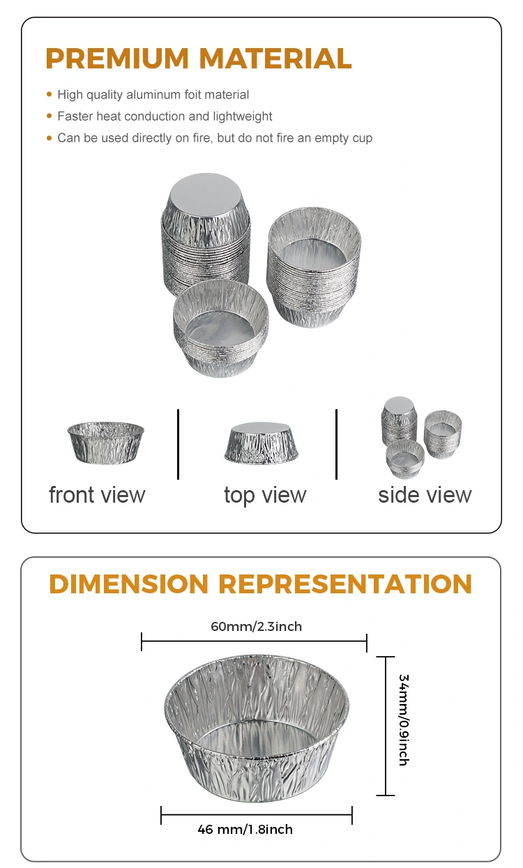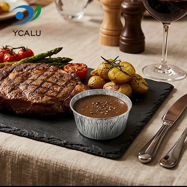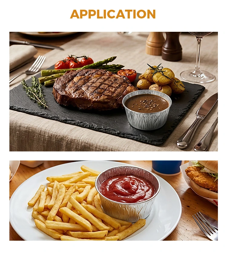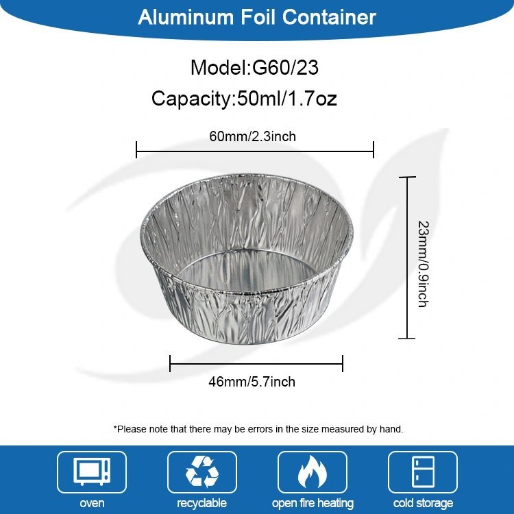 డిస్పోజబుల్ రౌండ్ సాస్ సిల్వర్ అల్యూమినియం ఫాయిల్ ఫుడ్ కంటైనర్లు