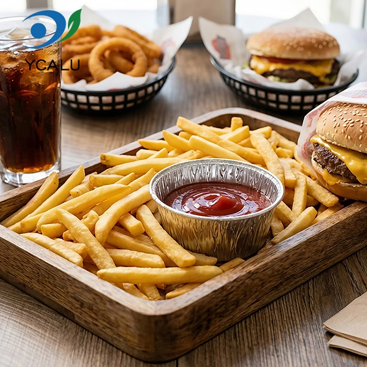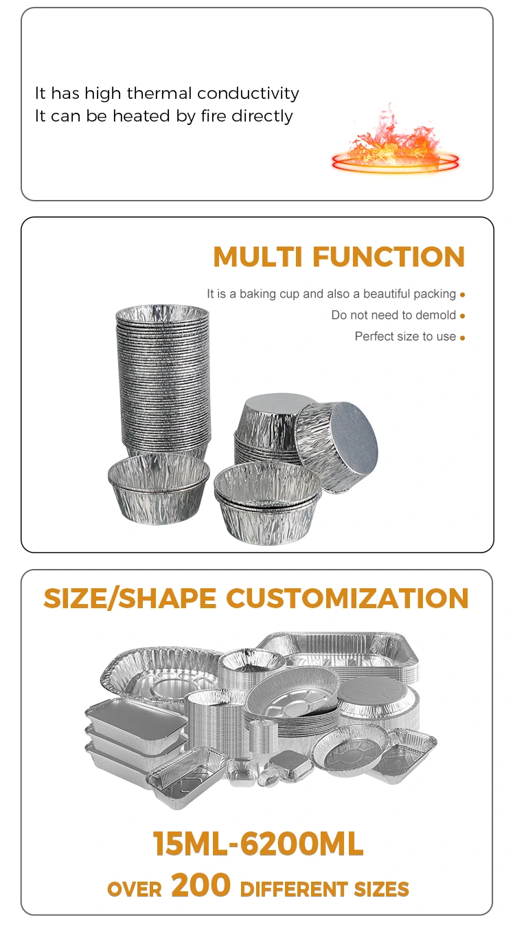 యుంచు అల్యూమినియం ఫాయిల్ సరఫరాదారు డిస్పోజబుల్ రౌండ్ సాస్ ఎయిర్ ఫ్రైయర్ సిల్వర్ అల్యూమినియం ఫాయిల్ కంటైనర్ ఫుడ్ గ్రేడ్ అల్యూమినియం ఫాయిల్ మెటీరియల్, వాసన లేదు, హెవీ మెటల్ అవశేషాలు లేవు, ఆహార సంపర్క ప్రమాణాలు, అధిక స్వచ్ఛత మరియు స్థిరమైన రసాయన లక్షణాలకు అనుగుణంగా ఉంటాయి. ఇది ఆమ్ల సాస్‌లతో నింపబడి, అధిక ఉష్ణోగ్రతల వద్ద వేడిచేసినప్పటికీ, ఇది హానికరమైన పదార్ధాలను విడుదల చేయదు మరియు ఆహారంతో ప్రత్యక్ష సంబంధంలో ఉన్నప్పుడు మీరు పూర్తిగా సురక్షితంగా భావించవచ్చు. ప్రొడక్ట్ FDA ఫుడ్ గ్రేడ్ సర్టిఫికేషన్‌లో ఉత్తీర్ణత సాధించింది మరియు FDA 21 CFR సంబంధిత ప్రమాణాలను ఖచ్చితంగా అనుసరిస్తుంది, ప్రొఫెషనల్ మైగ్రేషన్ టెస్టింగ్ మరియు హెవీ మెటల్ డిటెక్షన్ తర్వాత, సీసం మరియు కాడ్మియం వంటి హానికరమైన పదార్ధాల కంటెంట్ భద్రత థ్రెషోల్డ్ కంటే చాలా తక్కువగా ఉంది మరియు అర్హతలు పూర్తయ్యాయి. ఇది ఇంటికి లేదా వాణిజ్య వినియోగానికి అయినా, మీరు మనశ్శాంతితో ఎంచుకోవచ్చు. మాంసాలను మెరినేట్ చేయడానికి సాస్‌లు, కూరగాయల కోసం సలాడ్ డ్రెస్సింగ్‌లు మరియు కుడుములు ముంచడానికి వెనిగర్ వంటకాలను విభజించడానికి దీన్ని ఉపయోగించండి. భాగాలు వృధా చేయకుండా సరిగ్గా ఉంటాయి. ఇది వాసన బదిలీని కూడా నివారించవచ్చు మరియు స్థలాన్ని తీసుకోకుండా రిఫ్రిజిరేటర్‌లో చక్కగా నిల్వ చేయవచ్చు. టేక్‌అవే వ్యాపారులు దీనిని సాస్‌లను నిల్వ చేయడానికి ఉపయోగిస్తారు, వీటిని సీలు చేసి లీక్ ప్రూఫ్ చేసి, కస్టమర్‌లకు శుభ్రంగా పంపిణీ చేస్తారు. కెచప్ అయినా, స్వీట్ చిల్లీ సాస్ అయినా, చిక్కటి నువ్వుల సాస్ అయినా, ఆహారంలో లీకేజీ మరియు కలుషితమయ్యే ఇబ్బంది ఉండదు. బహిరంగ పిక్నిక్‌లు మరియు క్యాంపింగ్‌ల కోసం కూడా, మీరు మీతో కొన్నింటిని తీసుకురావచ్చు మరియు డిప్పింగ్ సాస్‌లను పట్టుకోవడానికి దాన్ని ఉపయోగించవచ్చు. ఇది తేలికైనది మరియు స్థలాన్ని తీసుకోదు. ఉపయోగం తర్వాత మీరు దాన్ని నేరుగా విసిరివేయవచ్చు. మీరు మురికి కంటైనర్ల సమూహాన్ని ఇంటికి తీసుకెళ్లాల్సిన అవసరం లేదు. ఇది ప్రధానంగా సులభంగా మరియు ఇబ్బంది లేనిది.