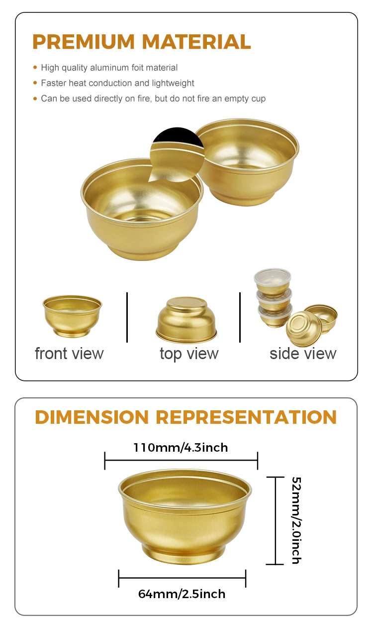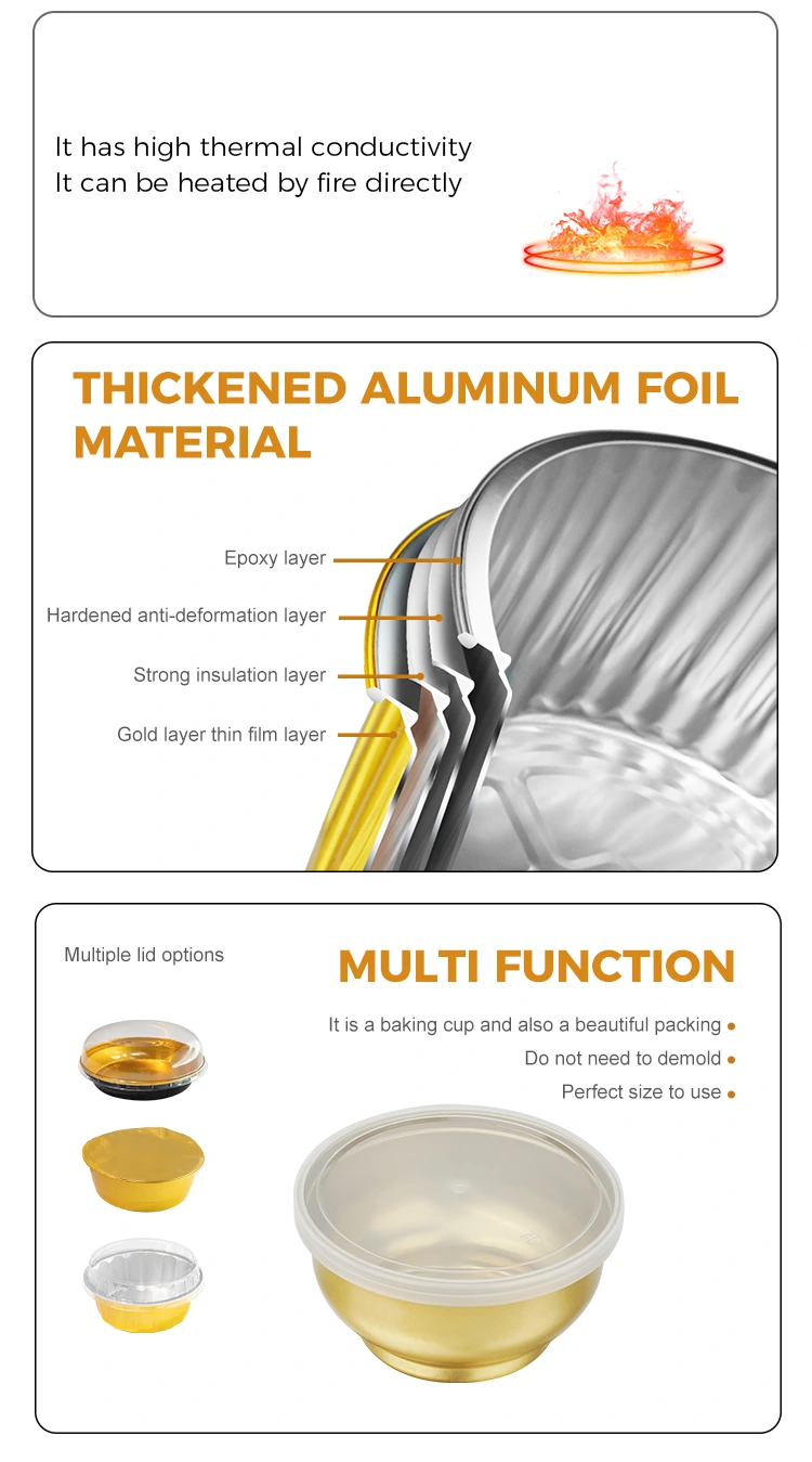• పునర్వినియోగపరచలేని రౌండ్ స్మాల్ గోల్డ్ బౌల్ అల్యూమినియం రేకు కంటైనర్లుపునర్వినియోగపరచలేని రౌండ్ స్మాల్ గోల్డ్ బౌల్ అల్యూమినియం రేకు కంటైనర్లు