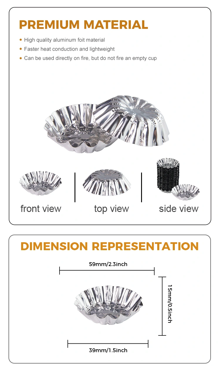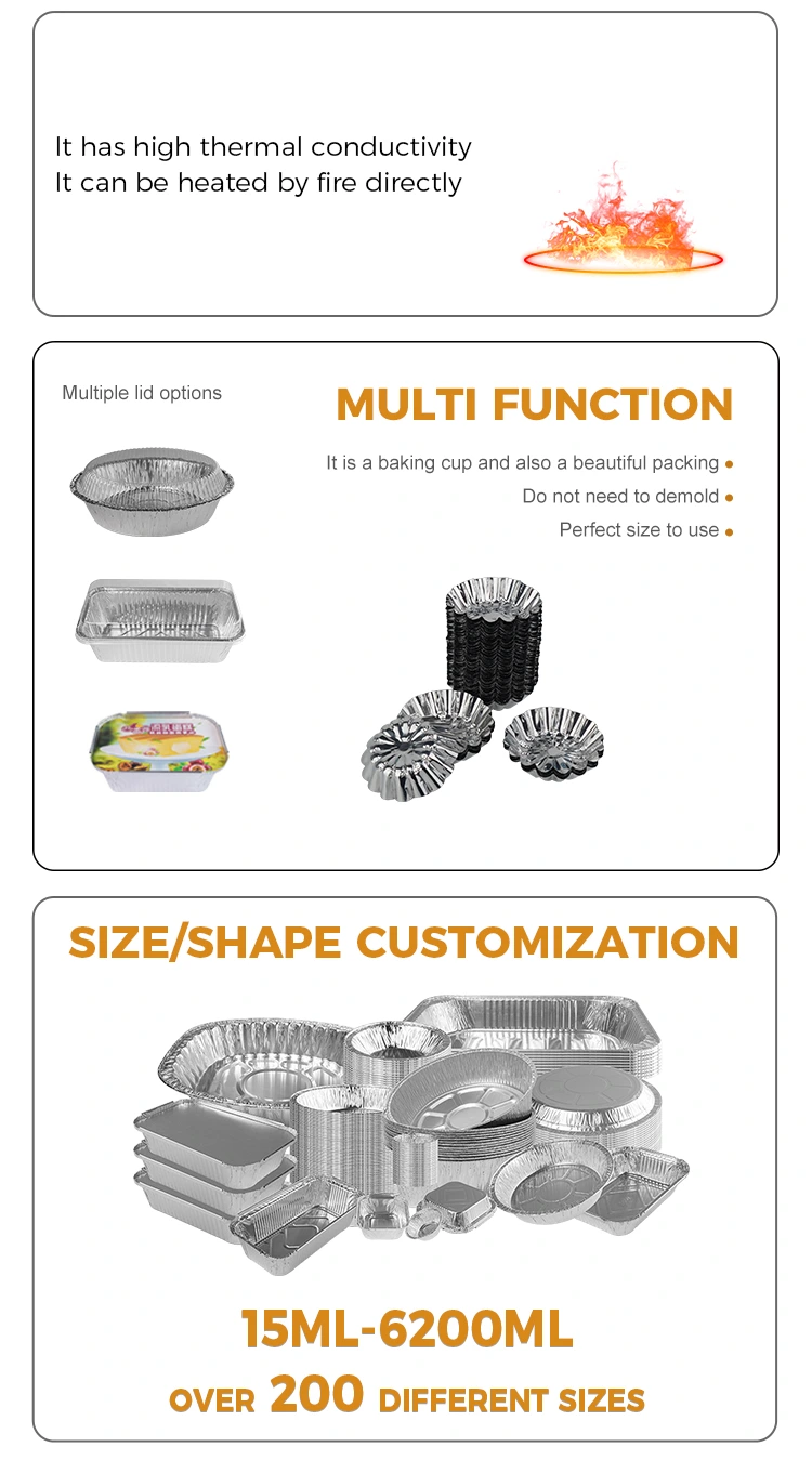 గుడ్డు టార్ట్‌లను ఎయిర్ ఫ్రైయర్ సిల్వర్ అల్యూమినియం రేకు ఆహార కంటైనర్‌లో కాల్చారు