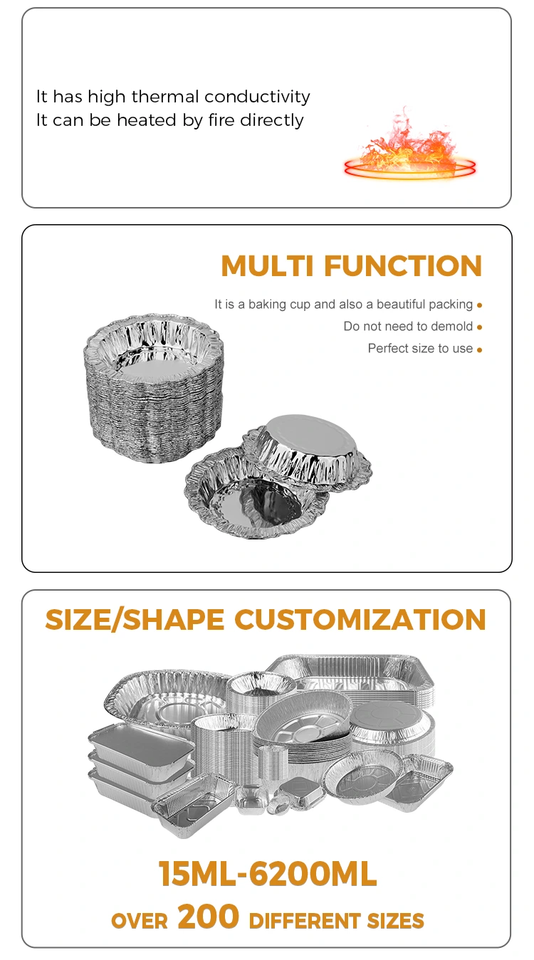 యుంచు అల్యూమినియం రేకు సరఫరాదారు లేస్ రౌండ్ బేకింగ్ కేక్ సిల్వర్ అల్యూమినియం రేకు కంటైనర్లు, బేకింగ్ కేకులు, గుడ్డు టార్ట్స్ మరియు గాలి వేయించడానికి చాలా సౌకర్యవంతంగా ఉంటాయి, అనేక ఫంక్షన్లతో, బేకింగ్ కోసం మందపాటి మరియు మన్నికైనవి. బేకింగ్ అచ్చులను ఎన్నుకునేటప్పుడు, మీరు దేనిని ఎక్కువగా విలువైనదిగా భావిస్తారు? పదార్థం నమ్మదగినదా? తగ్గించడం సులభం కాదా? ఇది యూజర్ ఫ్రెండ్లీ? ఈ లేస్ రౌండ్ బేకింగ్ కేక్ సిల్వర్ అల్యూమినియం రేకు కంటైనర్ బేకింగ్ అచ్చుల కోసం మీ అవసరాలను తీరుస్తుంది! 8011 ఫుడ్ కాంటాక్ట్ గ్రేడ్ అల్యూమినియం రేకు పదార్థం, ఆహార సంబంధానికి సురక్షితం, సులభంగా వైకల్యం లేదా లీక్ చేయబడదు, ఏకరీతి ఉష్ణ ప్రసరణ, సులభంగా కాలిపోని లేదా అధికంగా వండిన, రుచికరమైన మరియు సురక్షితంగా తయారు చేయడం, నూనె మరియు మరక నిరోధకత, సులభంగా డెమోల్డ్ చుట్టూ లేస్, మరియు మృదువైన ఆకారం, మరియు మృదువైన ఆకారం, మరియు మృదువైన ఆకారం, మరియు సులువుగా ఉంటుంది.