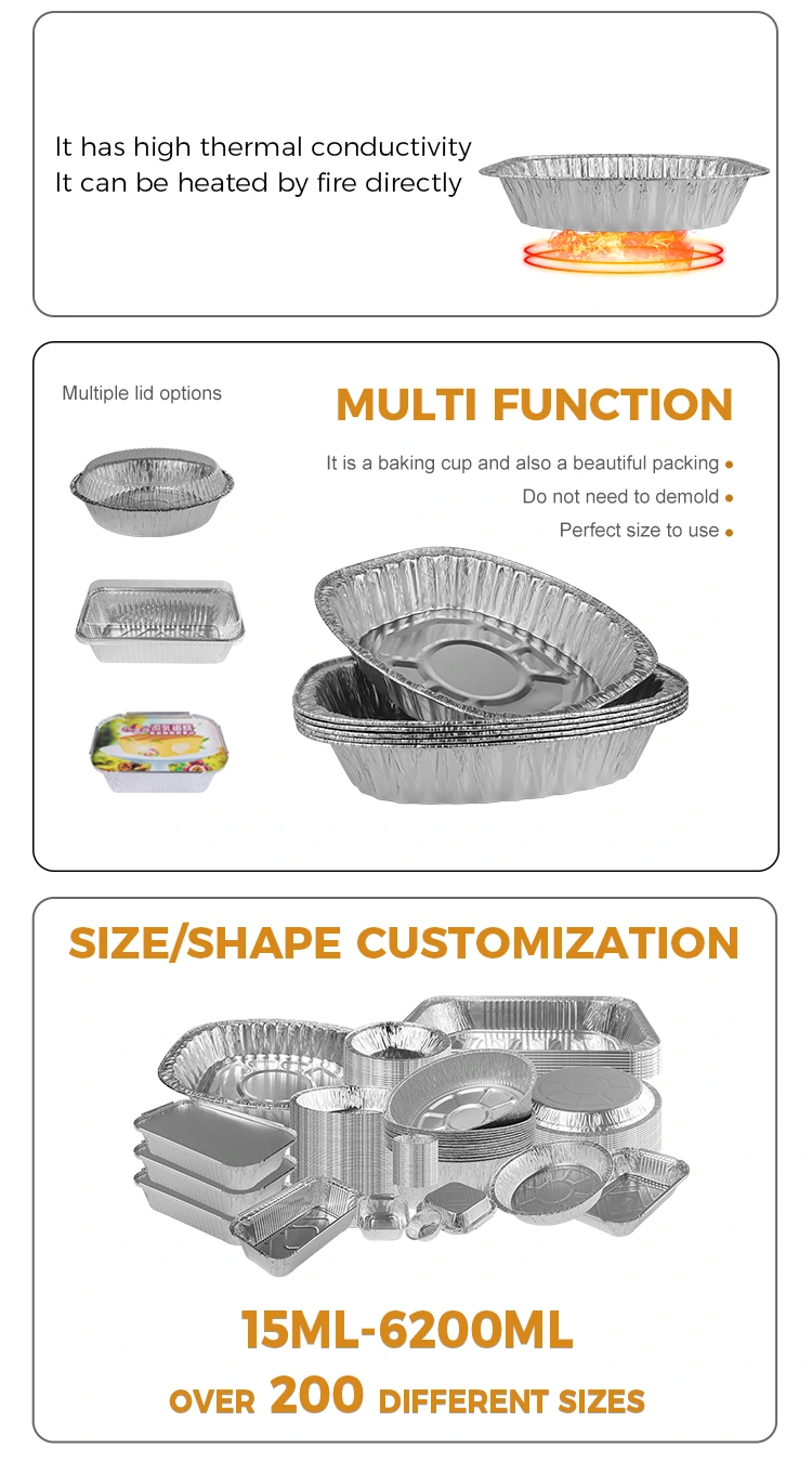 ఈ ఉత్పత్తి పునర్వినియోగపరచలేని ఉత్పత్తి మరియు శుభ్రం చేయవలసిన అవసరం లేదు, ఇది కార్మిక ఖర్చులను ఆదా చేస్తుంది. దీనిని పెంపుడు జంతువుల పూర్తిగా పారదర్శక అల్యూమినియం రేకు మూతతో జత చేయవచ్చు, ఇది ధూళి మరియు ద్రవ లీకేజీని సమర్థవంతంగా నిరోధిస్తుంది. ఉత్పత్తి యొక్క మన్నిక మరియు భద్రత స్టిఫెనర్స్ రూపకల్పన మరియు దిగువ యొక్క సాధారణ పుటాకార మరియు కుంభాకార ఆకారం ద్వారా మెరుగుపరచబడతాయి. పోర్టబుల్ డిజైన్ అధిక మరియు తక్కువ ఉష్ణోగ్రతలకు నిరోధకతను కలిగి ఉంటుంది, అధిక మరియు తక్కువ ఉష్ణోగ్రతలకు నిరోధకతను కలిగిస్తుంది, ఉష్ణోగ్రత పరిధిలో -20 ° C నుండి 250 ° C వరకు ఉపయోగించబడుతుంది మరియు ఇది చమురు మరియు నీటికి అగమ్యగోచరంగా ఉంటుంది, ఉత్పత్తి యొక్క ఉష్ణ నిలుపుదల మరియు రవాణా బిగుతును పెంచుతుంది.