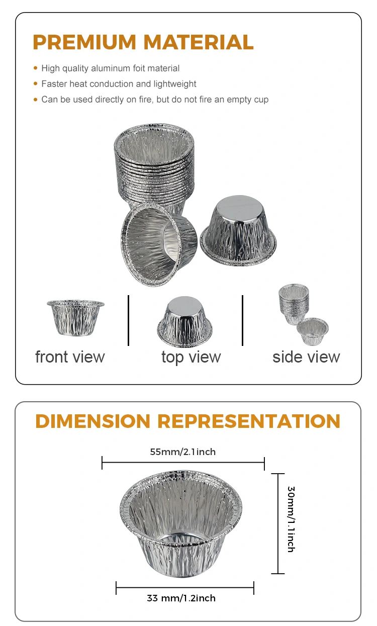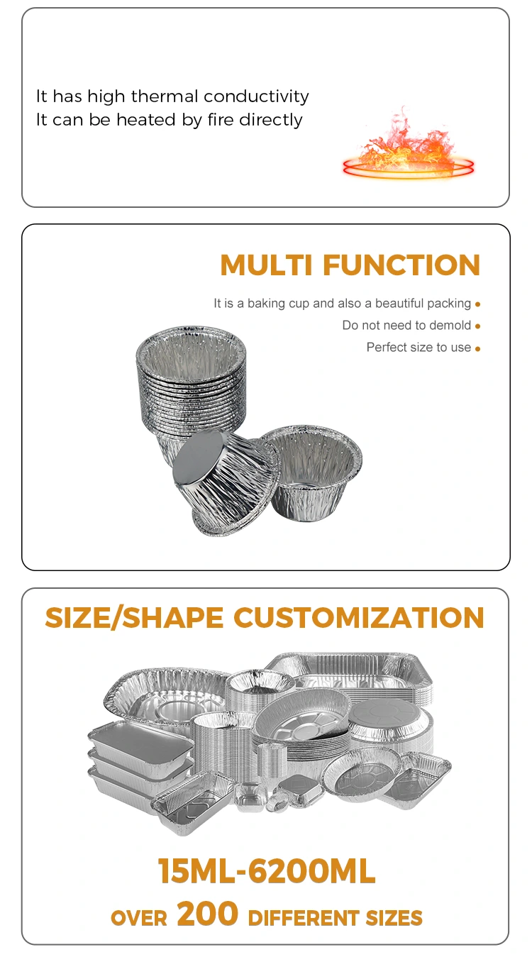 హోమ్ ఓవెన్ అప్లికేషన్‌ల కోసం, మీ పిల్లలు తినడానికి ఇష్టపడే మినీ కేక్‌లు మరియు ఆరోగ్యకరమైన బేక్డ్ పుడ్డింగ్‌లను తయారు చేయడానికి మీరు అల్యూమినియం ఫాయిల్ కప్పులను ఉపయోగించవచ్చు. బేకింగ్ ట్రేని శుభ్రం చేయవలసిన అవసరం లేదు మరియు భోజనం తర్వాత శుభ్రం చేయడం సులభం.
