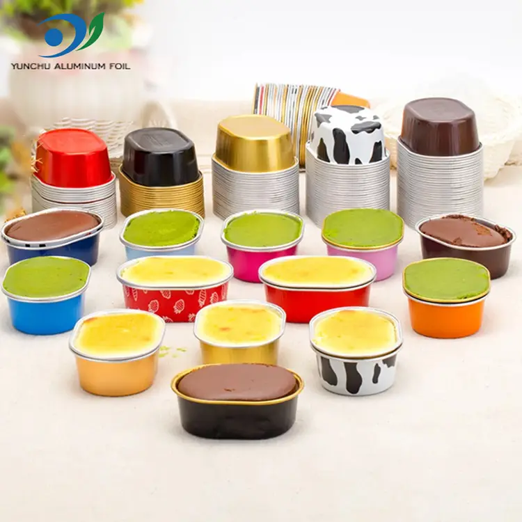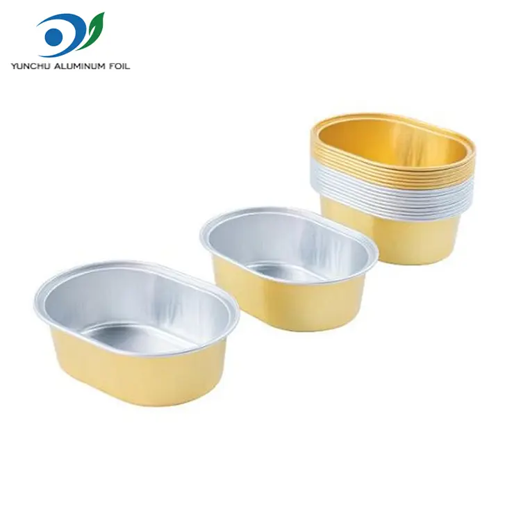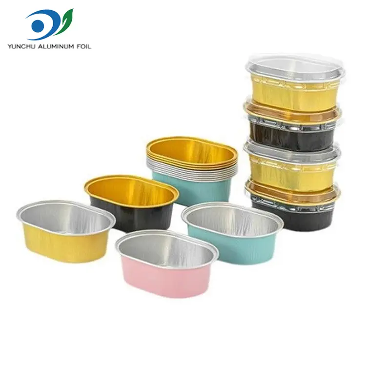 చైనా యుంచు అల్యూమినియం ఫాయిల్ ఫ్యాక్టరీ యొక్క అధిక-నాణ్యత ఓవల్ లైట్-వాల్డ్ అల్యూమినియం ఫాయిల్ కంటైనర్‌ల మోడల్ E068, ఎగువ వ్యాసం 76*56 mm (2.9*2.2 అంగుళాలు), దిగువ వ్యాసం 66*45 mm (2.5*1.7 అంగుళాలు) మరియు 26 mm (1 అంగుళం) ఎత్తు. వాల్యూమ్ సుమారుగా 68 మిల్లీలీటర్లు (2.3 ఔన్సులు). ఇది ఓవల్ ఆకారపు కేక్ బాక్స్, దీనిని PET పారదర్శక మూతతో అమర్చవచ్చు. ఇది బేకింగ్ ఫుడ్స్ (చిన్న పుడ్డింగ్, మినీ కేక్‌లు మొదలైనవి) మరియు చిన్న ఫుడ్ అప్లికేషన్‌లకు అనుకూలంగా ఉంటుంది. ఓవల్ లైట్-వాల్డ్ అల్యూమినియం ఫాయిల్ కంటైనర్‌లు ఫుడ్-గ్రేడ్ అల్యూమినియం ఫాయిల్ మెటీరియల్‌తో కస్టమ్-మేడ్, ఒక అచ్చులో బహుళ-ఫంక్షనల్, వన్-పీస్ స్టాంపింగ్ ద్వారా ఏర్పడతాయి మరియు అనుకూలీకరణ కోసం బహుళ రంగులలో అందుబాటులో ఉంటాయి, ఇవి ప్రతి కస్టమర్ అవసరాలను తీర్చగలవు.