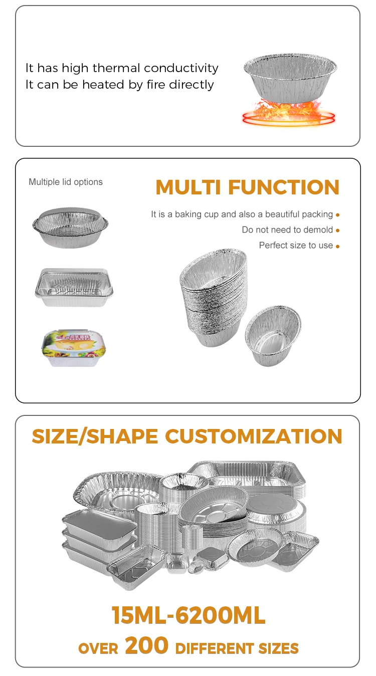 లక్షణాలు: శుభ్రపరచకుండా ఆరోగ్యకరమైన మరియు పర్యావరణ అనుకూలమైన, వివిధ రకాల కుటుంబాన్ని తయారు చేయడం, చిన్న రుచికరమైన పదార్థాలను కాల్చడం, కుటుంబాలు మరియు బేకరీల ఎంపిక, అల్యూమినియం రేకు పదార్థం సురక్షితమైనది మరియు పరిశుభ్రమైనది, శుభ్రపరచడం లేదు, బహిరంగ మంట మీద కాల్చవచ్చు, ఆహారాన్ని తయారు చేయడానికి సౌకర్యవంతంగా ఉంటుంది.