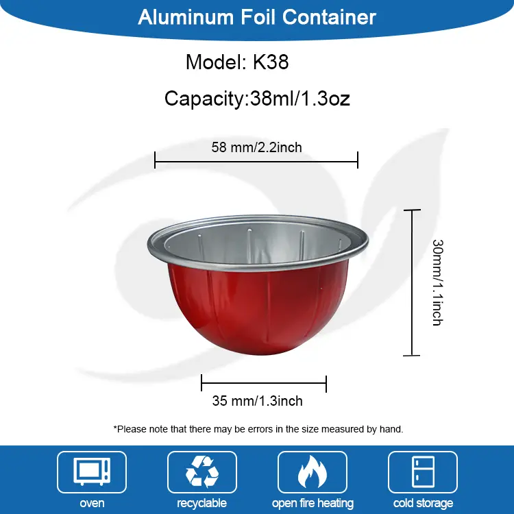 యుంచు అల్యూమినియం రేకు K38 ప్లానెట్ ఖాళీ కాఫీ క్యాప్సూల్ స్పెసిఫికేషన్స్: 58*35*30 మిమీ (2.2*1.3*1.1 అంగుళాలు) సామర్థ్యం 38 మి.లీ (1.3 oz) కాఫీ, కాఫీ ద్రవాన్ని పట్టుకోగలదు. చాలా ఎస్ప్రెస్సో క్యాప్సూల్ యంత్రాలు (ఎస్ప్రెస్సో పౌడర్, ఎస్ప్రెస్సో లిక్విడ్), టీ, సాస్ మరియు ఇతర ప్యాకేజింగ్ అవసరాలకు అనుగుణంగా, మీరు లోగో, రంగును కూడా అనుకూలీకరించవచ్చు మరియు అల్యూమినియం రేకు కవర్‌పై నమూనాను ముద్రించవచ్చు మరియు కాఫీ క్యాప్సూల్ దిగువన కూడా స్టాంప్ చేయవచ్చు.