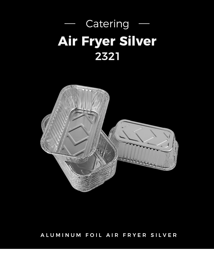 దీర్ఘచతురస్రాకార ఎయిర్ ఫ్రైయర్ గ్రిల్ సిల్వర్ అల్యూమినియం రేకు కంటైనర్లు
