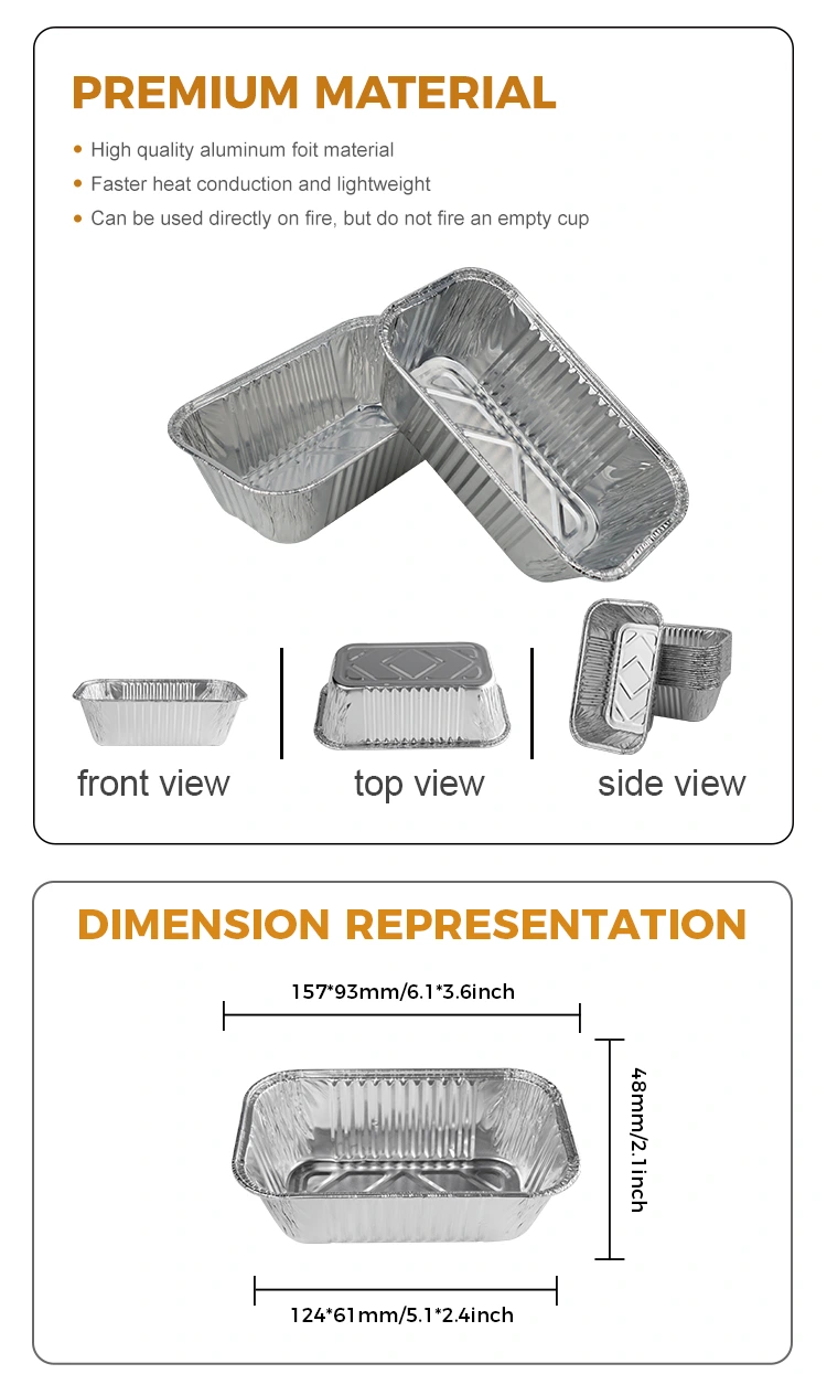 యుంచు అల్యూమినియం రేకు సరఫరాదారు యొక్క దీర్ఘచతురస్రాకార ఎయిర్ ఫ్రైయర్ గ్రిల్ సిల్వర్ అల్యూమినియం రేకు కంటైనర్లు ఎయిర్ ఫ్రైయర్, బేకింగ్, క్యాటరింగ్ టేకావే, పార్టీలు మరియు స్వీయ-సేవ వేదికలు వంటి వివిధ సందర్భాలకు అనుకూలంగా ఉంటాయి. చదరపు రొట్టె, కాల్చిన కుకీలు, గ్రిల్స్ మరియు ఎయిర్ ఫ్రైయర్స్ వంటి ఆహార పదార్థాలను తయారు చేయడానికి దీనిని ఉపయోగించవచ్చు మరియు వివిధ రకాల ఆహార పదార్థాలతో ఉపయోగించవచ్చు. 450 ఎంఎల్ సామర్థ్యంతో, ఈ కంటైనర్ చాలా ఆహార పదార్థాలను పట్టుకోగలదు మరియు ధూళి మరియు ఇతర కలుషితాలు ప్రవేశించకుండా నిరోధించడానికి పూర్తిగా పారదర్శక పెంపుడు రేకు మూతతో వస్తుంది. మృదువైన బాహ్య గోడలు పేర్చడం మరియు నిల్వ చేయడం సులభం చేస్తాయి, స్థలాన్ని ఆదా చేస్తాయి. ఇది ఉపయోగించడానికి సురక్షితమైనది మరియు ఆరోగ్యకరమైనది, మరియు ఇది చాలా పర్యావరణ అనుకూలమైనది, మరియు పదార్థం పునర్వినియోగపరచదగినది, ఇది తీసుకువెళ్ళడం మరియు తిరిగి ఉపయోగించడం సులభం చేస్తుంది.