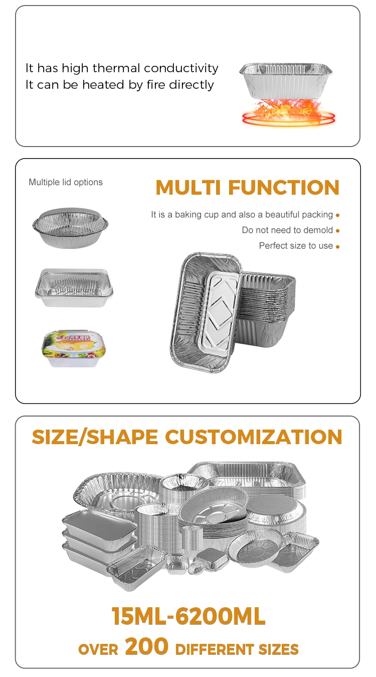 లక్షణాలు: శుభ్రపరచకుండా ఆరోగ్యకరమైన మరియు పర్యావరణ అనుకూలమైన, వివిధ రకాల కుటుంబాన్ని తయారు చేయడం, చిన్న రుచికరమైన పదార్థాలను కాల్చడం, కుటుంబాలు మరియు బేకరీల ఎంపిక, అల్యూమినియం రేకు పదార్థం సురక్షితమైనది మరియు పరిశుభ్రమైనది, శుభ్రపరచడం లేదు, బహిరంగ మంట మీద కాల్చవచ్చు, ఆహారాన్ని తయారు చేయడానికి సౌకర్యవంతంగా ఉంటుంది.