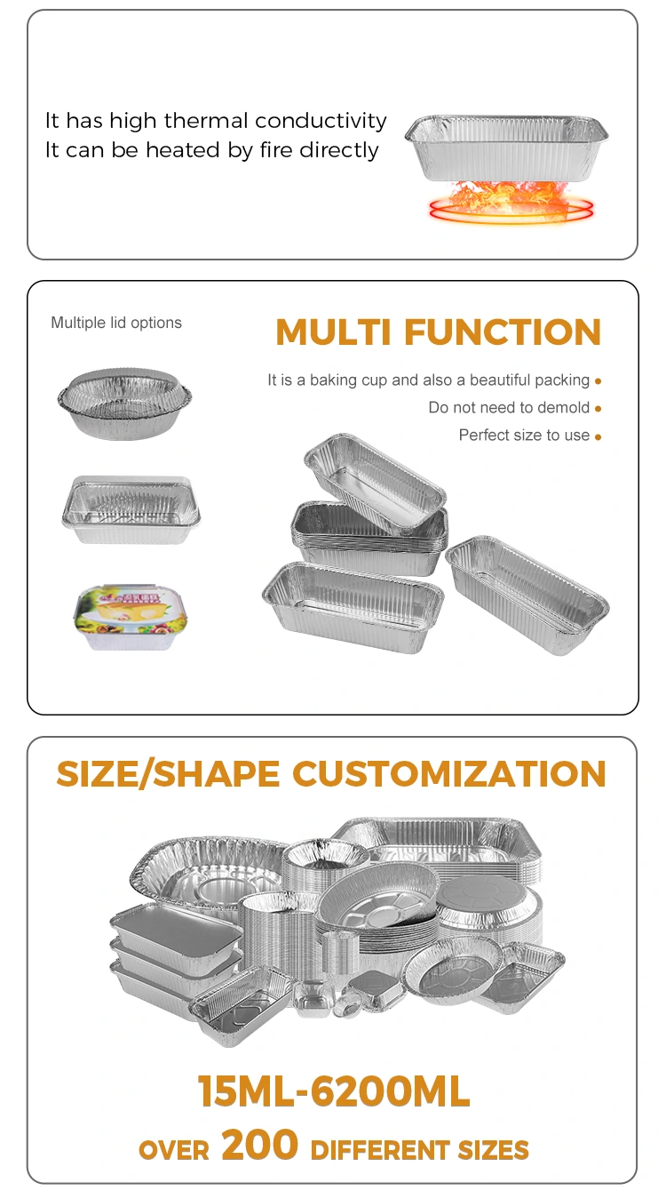యుంచు అల్యూమినియం రేకు సరఫరాదారు మోడల్ 2325 దీర్ఘచతురస్రాకార ఎయిర్ ఫ్రైయర్ టేకావే సిల్వర్ అల్యూమినియం రేకు కంటైనర్లు అధిక-నాణ్యత గల అల్యూమినియం రేకు పదార్థం చిక్కగా ఉంటుంది మరియు విచ్ఛిన్నం చేయడం సులభం కాదు, మరియు బహిరంగ మంటపై వేడి చేయబడదు, ఈ అల్యూమినియం రేకు కంటైనర్ రూపంలో అందంగా ఉంది, కానీ చాలా ఆచరణాత్మకమైనది. ఇది అధిక-ఉష్ణోగ్రత బేకింగ్‌ను తట్టుకోగలదు, దిగువను కాల్చడం లేదా వైకల్యం చేయడం అంత సులభం కాదు, మరియు దిగువ రూపకల్పన కూడా అందంగా మరియు సొగసైనది, ఇది ఆహారాన్ని అంటుకోకుండా సమర్థవంతంగా నిరోధించగలదు. అదనంగా, దాని అధిక-వైపు డిజైన్ అల్యూమినియం రేకు కలయికను మరింత స్థిరంగా మరియు ఉపయోగించడానికి సులభతరం చేస్తుంది. మీరు ఏ సైజు స్పెసిఫికేషన్‌ను ఎంచుకున్నా, ఈ అల్యూమినియం రేకు కంటైనర్ మీ విభిన్న అవసరాలను తీర్చిదిద్దే వివిధ కుండ పరిమాణాలకు ఖచ్చితంగా అనుగుణంగా ఉంటుంది. ఎక్కువ మంది వినియోగదారులను అధిక-నాణ్యత ఉత్పత్తులు మరియు సేవలను ఆస్వాదించడానికి అనుమతించడానికి, మేము ఎంచుకోవడానికి అనేక రకాల పరిమాణ లక్షణాలను అందిస్తాము మరియు వ్యక్తిగతీకరించిన అవసరాలను తీర్చడానికి మీ అవసరాలకు అనుగుణంగా నమూనా ముద్రణను అనుకూలీకరించవచ్చు. ఒకే MOQ తో 1000 ముక్కలు మాత్రమే, కొనుగోలు ప్రక్రియ సరళమైనది మరియు వేగంగా ఉంటుంది మరియు ఖర్చు పనితీరు చాలా ఎక్కువ. మీకు ఏవైనా ప్రశ్నలు ఉంటే లేదా మా ఉత్పత్తుల గురించి మరింత అవగాహన అవసరమైతే, దయచేసి మమ్మల్ని సంప్రదించడానికి సంకోచించకండి, మీకు సేవ చేయడం మాకు సంతోషంగా ఉంటుంది.