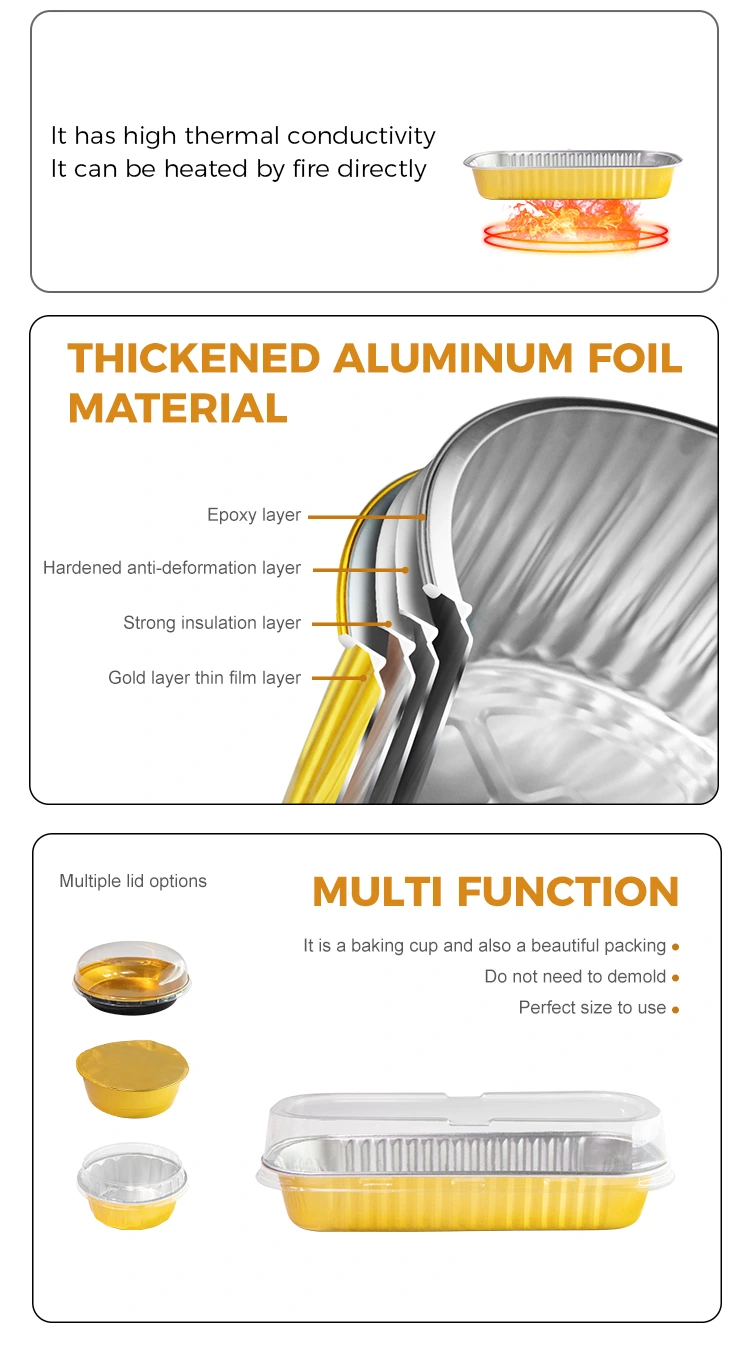 ఫీచర్స్: వాటర్‌ప్రూఫ్ మరియు ఆయిల్ ప్రూఫ్ కుండలు ఉపయోగించిన తర్వాత శుభ్రం చేయడం సులభం, కుండ యొక్క లైనర్‌ను రక్షించడం, అధిక వేడి-నిరోధక మరియు వేడి గాలి ప్రసరణకు నిర్భయ, అల్యూమినియం రేకు పెట్టెలో అధిక ఉష్ణ నిరోధకత, రొట్టెలుకాల్చు-నిరోధక, బర్న్ చేయడం అంత సులభం కాదు, విచ్ఛిన్నం చేయడం అంత సులభం కాదు, వివిధ వంట దృశ్యాలకు అనువైనది, తద్వారా మీరు ఆహారాన్ని ఆస్వాదించవచ్చు. ఇది కుటుంబ విందు అయినా లేదా స్నేహితుల సమావేశం అయినా, ఆహారం యొక్క రుచికరమైన మరియు భద్రతను నిర్ధారిస్తుంది.
