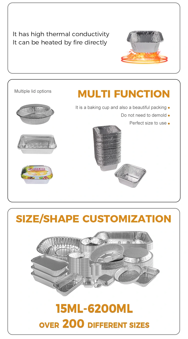 యుంచు అల్యూమినియం ఫాయిల్ సరఫరాదారు స్క్వేర్ ఎయిర్ ఫ్రైయర్ సిల్వర్ అల్యూమినియం రేకు కంటైనర్లు క్యాటరింగ్, హోమ్ ఎయిర్ ఫ్రైయర్ ఉత్పత్తి, టేకావే డెలివరీ, బఫే సాస్, విందులు మరియు ఇతర ప్రదేశాలతో, కానీ ఆవిరి చేసిన గుడ్లు, చాక్లెట్, బిస్కెట్లు, చిన్న కేకులు, చిన్న కేకులు, సాస్‌లు మరియు ఇతర శ్రేణులతో కూడినవి కావు. వస్తువులు, చిన్న అల్యూమినియం రేకు కప్పులను వంటలకు పాయింట్లను జోడించేటప్పుడు దూరంగా ఉంచవచ్చు, కానీ కడిగి, భారం లేకుండా ఉపయోగించవచ్చు.