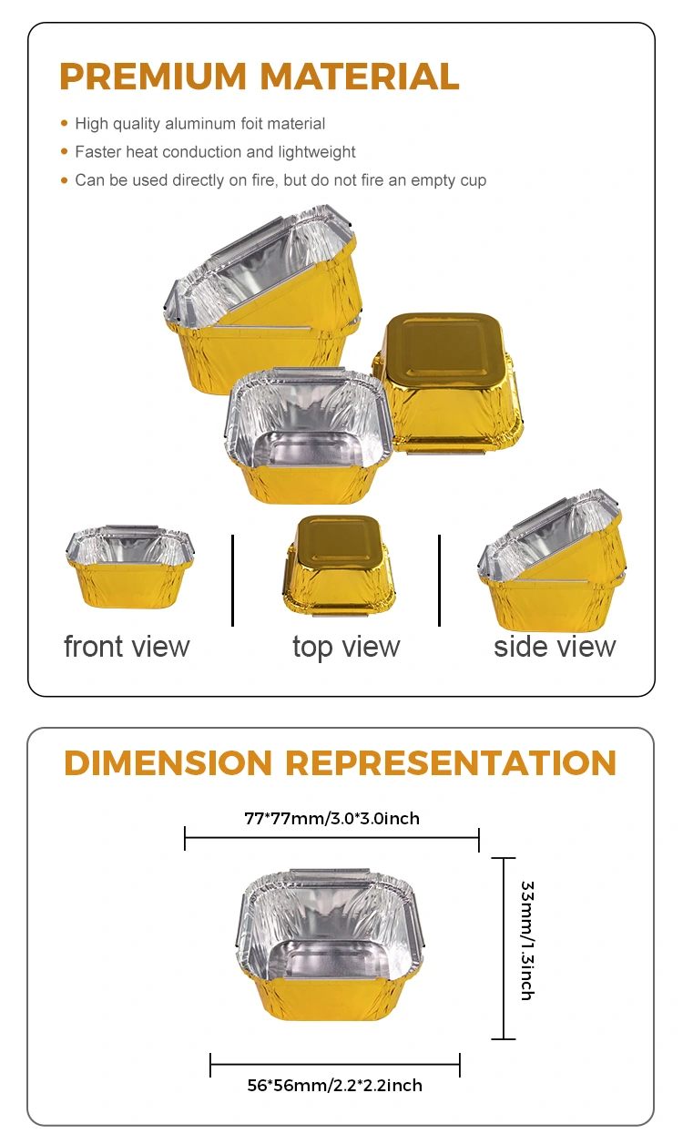 యుంచు అల్యూమినియం రేకు అందించిన స్క్వేర్ బేకింగ్ ఓవెన్ సిల్వర్ రేకు కంటైనర్ ఒక కిచెన్ అల్యూమినియం రేకు కంటైనర్, ఇది స్క్వేర్ కేకులు, బేకింగ్ కుకీలు, గ్రిల్లింగ్ మరియు ఎయిర్ ఫ్రైయర్‌లో వంట చేయడానికి అనువైనది. ఇది చాలా ఆహారాన్ని సులభంగా పట్టుకోగల నిరాడంబరమైన సామర్థ్యాన్ని (95 ఎంఎల్) కలిగి ఉండటమే కాకుండా, దుమ్ము మరియు ఇతర కలుషితాలను సమర్థవంతంగా ఉంచడానికి ఇది పూర్తిగా పారదర్శక పెంపుడు రేకు మూతతో వస్తుంది. మృదువైన ఉపరితల రూపకల్పన కంటైనర్లను పేర్చడం మరియు నిల్వ చేయడం సులభం చేస్తుంది, విలువైన వంటగది స్థలాన్ని ఆదా చేస్తుంది.